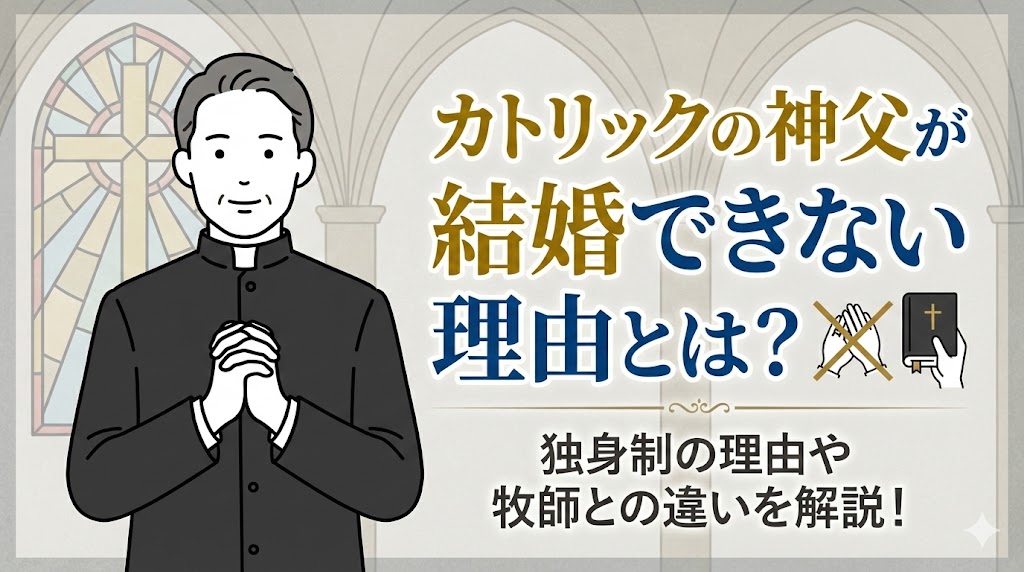 「ドラマや映画に出てくる神父さんは、どうして独身なんだろう?」と不思議に思ったことはありませんか。身近な疑問ですが、実はそこにはカトリック教会の長い歴史と、深い愛の考え方が隠されています。この記事では、神父さんが結婚しない具体的な理由や、結婚ができる牧師さんとの違いをわかりやすくお伝えします。最後まで読むと、キリスト教の世界がぐっと身近に感じられるはずですよ。