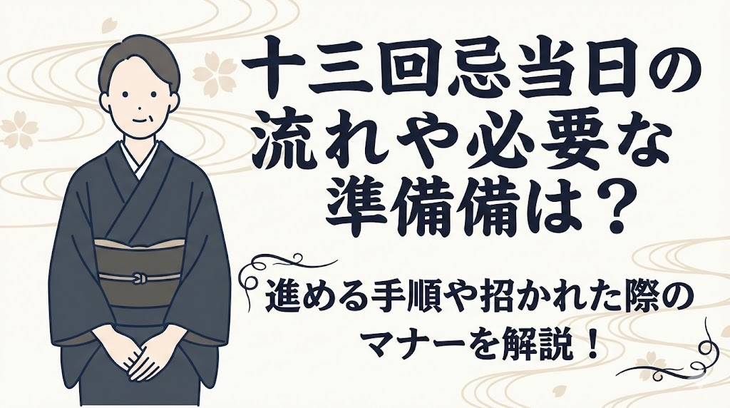 亡くなってから月日が流れ、久しぶりに執筆する法要が「十三回忌」です。三回忌や七回忌に比べると少し間が空くため、「当日は何をすればいいんだっけ?」「準備は何から始めるのが正解?」と迷うのは当然のこと。この記事では、施主としてやるべき手順から、招かれた側が気をつけるべき作法まで、今のあなたに必要な情報を分かりやすくお届けします。