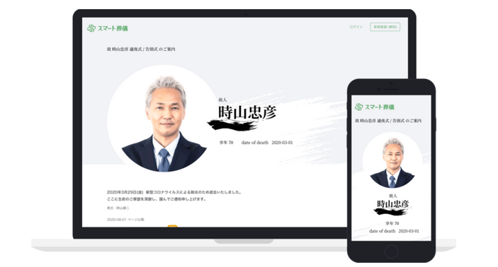 訃報のWEB案内、香典のオンライン決済、思い出の写真共有などが可能なサービスです 。